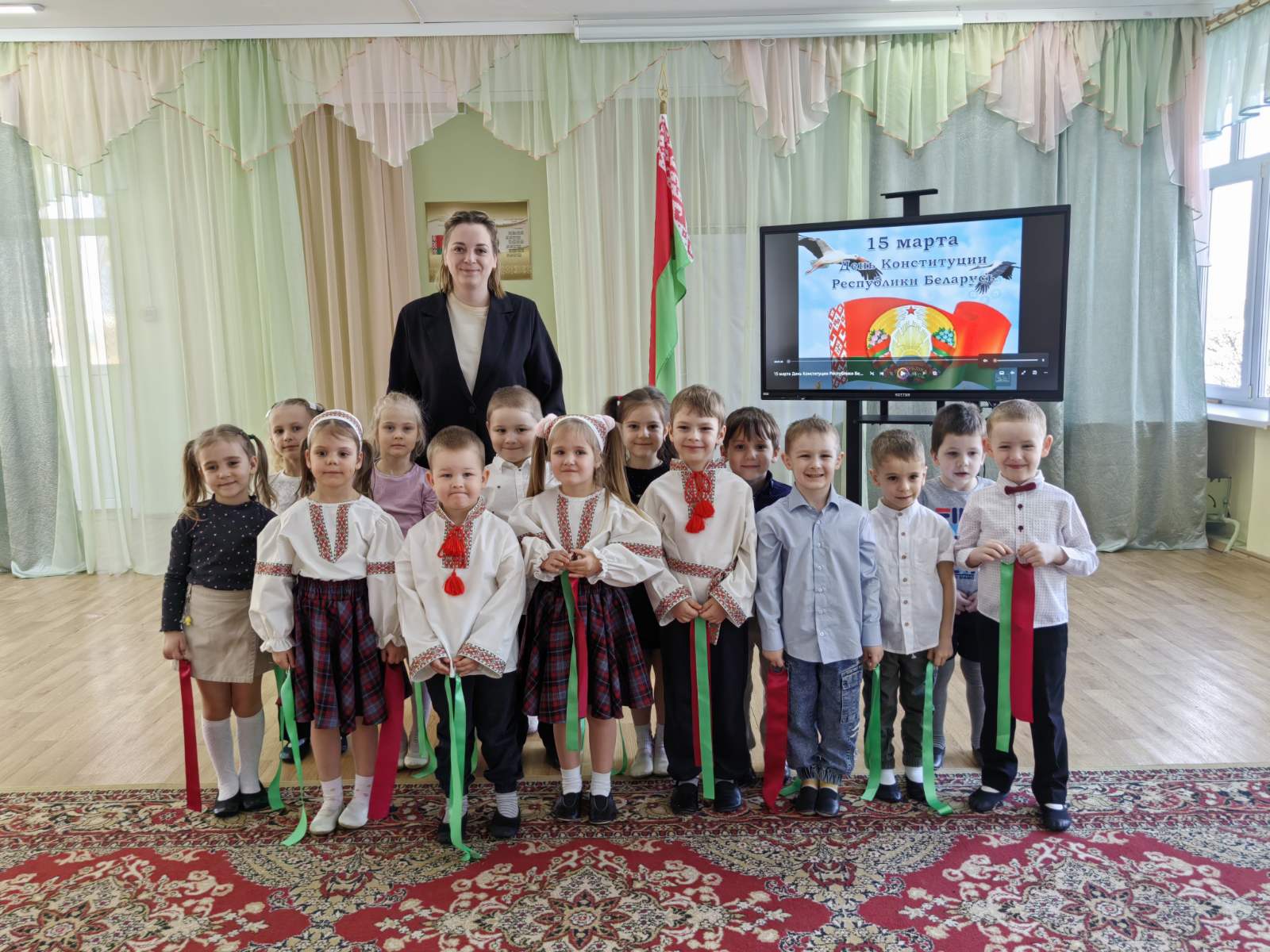 Сегодня, 13 марта, в нашем учреждении дошкольного образования для воспитанников старших групп было организованно тематическое мероприятие, приуроченное ко Дню Конституции Республики Беларусь. Праздник, который страна будет отмечать 15 марта, помог ребятам сделать первые шаги в изучении главного закона своей Родины.