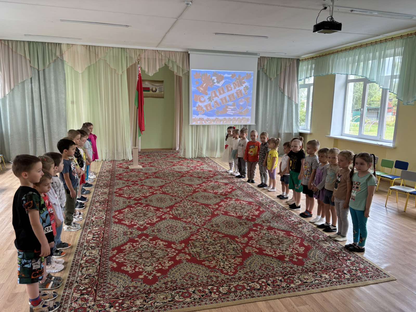 Для воспитанников старших и средних групп состоялась торжественная линейка, которая началась с государственного гимна Республики Беларусь.