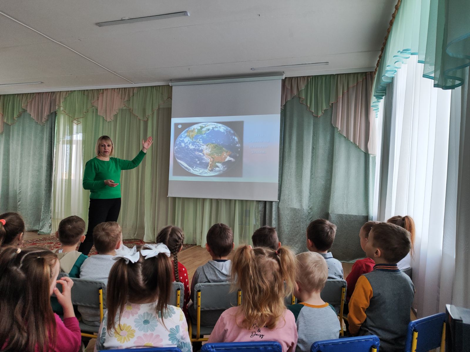 Ребятишки с большим интересом слушали рассказы о планетах и звёздах, о комических кораблях, спутниках, о собачках Белке и Стрелке, которым удалось до человека побывать в космосе, о первом человеке, отправившемся покорять космическое пространство - Юрии Гагарине, о белорусских космонавтах Олеге Новицком, Владимире Коваленке, Петре Климуке, Марине Василевской.