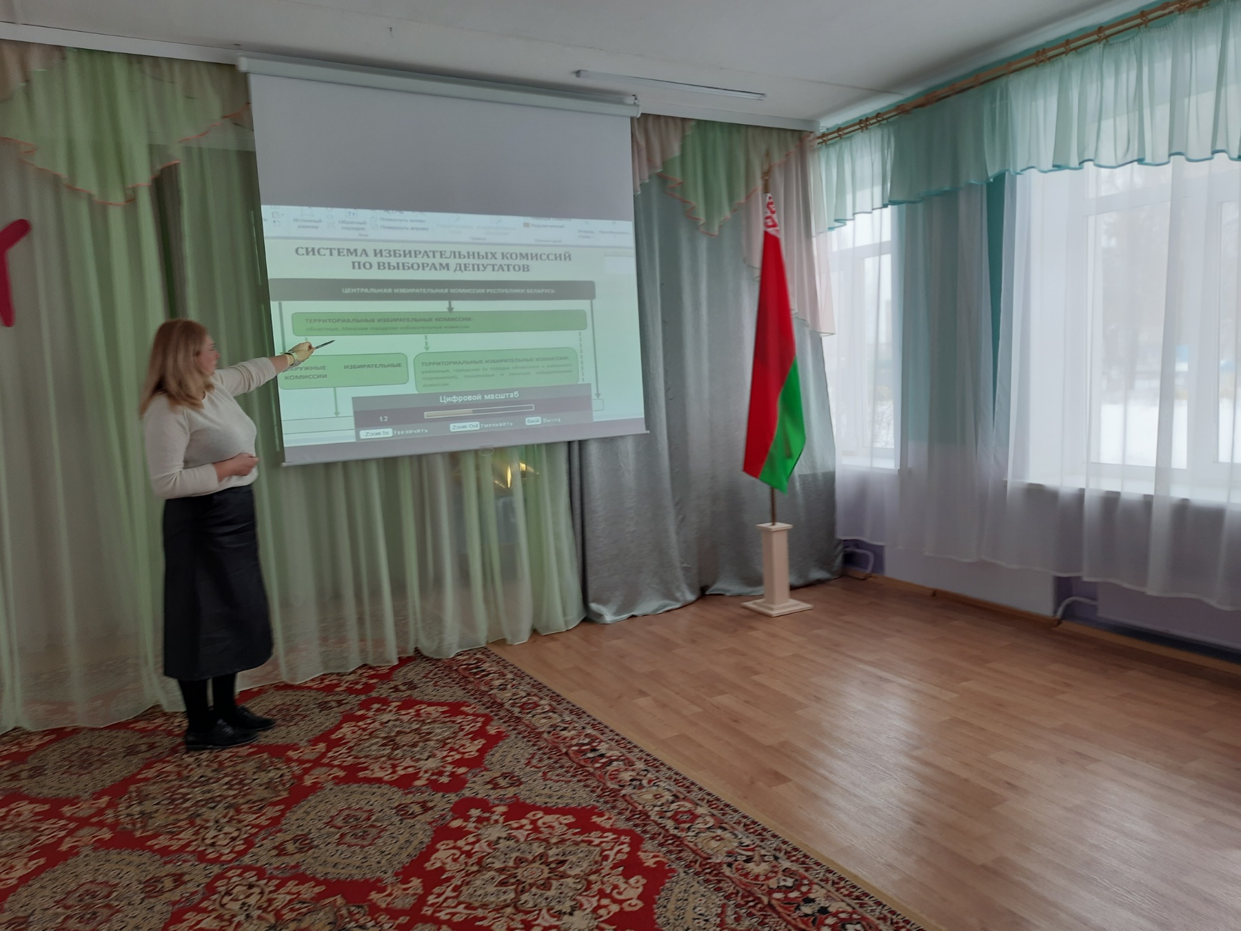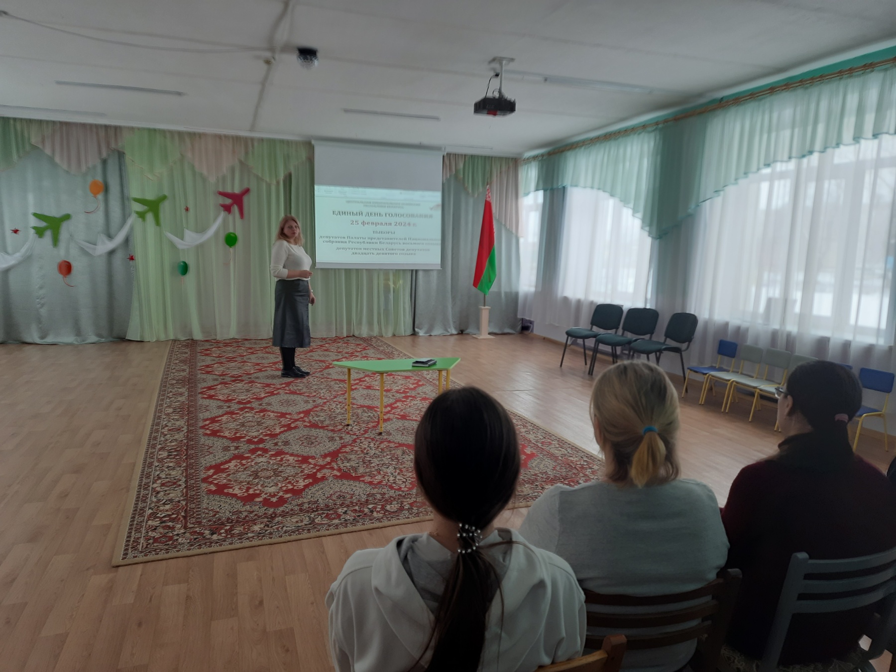 Заместитель заведующего по основной деятельности рассказала о гражданском долге каждого жителя Республики Беларусь о важности участия в голосовании. Осветила информацию о нахождении избирательного участка на улице Ямницкой.