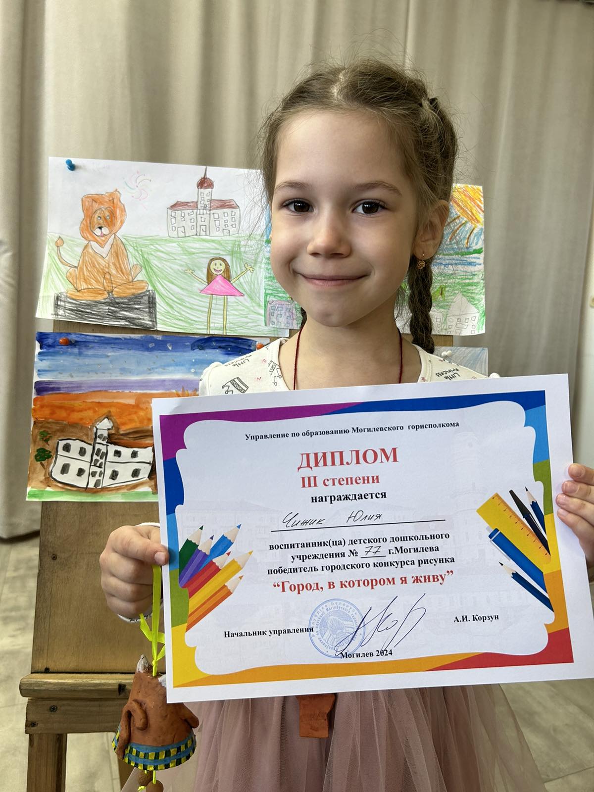 Воспитанница нашего учреждения образования Чижик Юлия заняла 3 место на городском конкурсе рисунка "Город, в котором я живу".