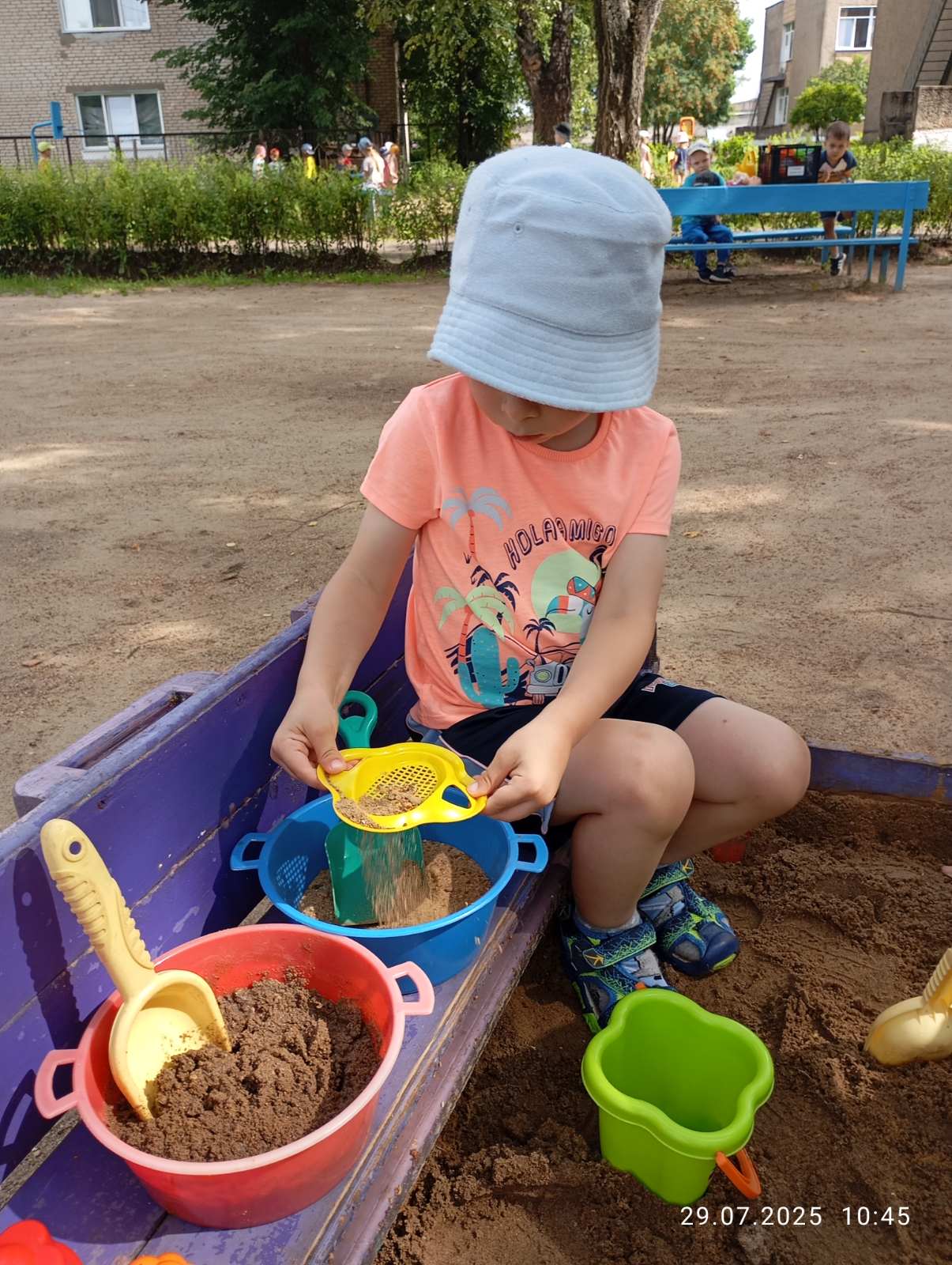 Воспитатель дошкольного образования, Уколова Виктория Александровна, на прогулке с воспитанниками второй младшей группы провела опыты с песком и водой. Закрепили свойства сухого и мокрого песка, убедились, что сухой песок сыпучий и не лепиться, а мокрый песок плотный и хорошо лепиться. После ребята с удовольствием продолжили самостоятельно играть с песком.