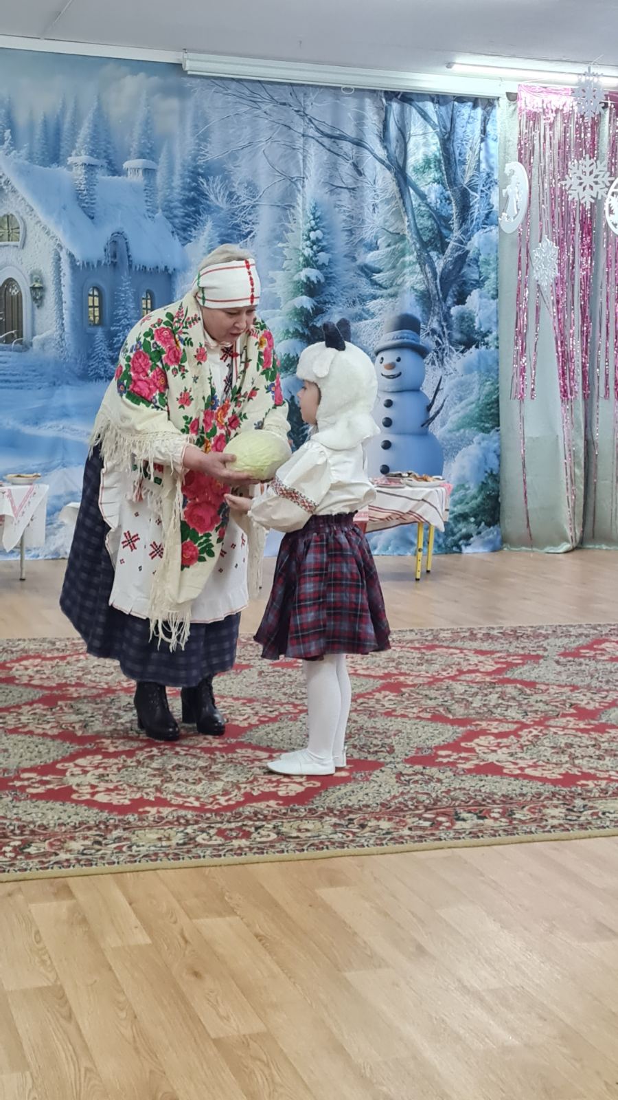 Ряженые артисты разыграли настоящий спектакль. Они погостили у радушной хозяйки, поиграли с козой, пели песни, водили хороводы, разгадывали загадки, гадали. В конце мероприятия хозяева угощали гостей разными вкусностями. У всех участников колядок остались хорошие эмоции о проведенном празднике.