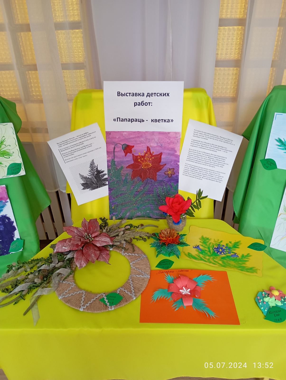 В нашем саду 05.07.2024г. прошла выставка детских работ: " Папараць - кветка". Ребята совместно с родителями рисовали рисунки, изготавливали поделки посвященные народному празднику "Купалле.